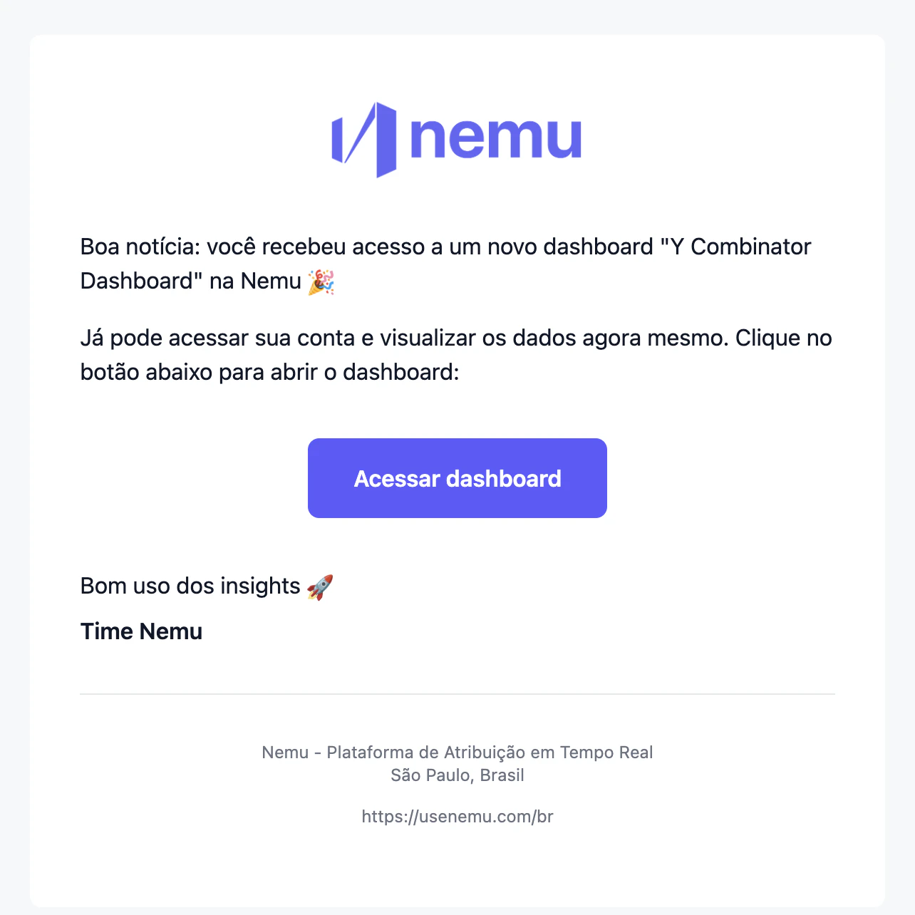 If the email is already registered on the Nemu platform, the user will receive an email informing them that they have gained access to the new dashboard.