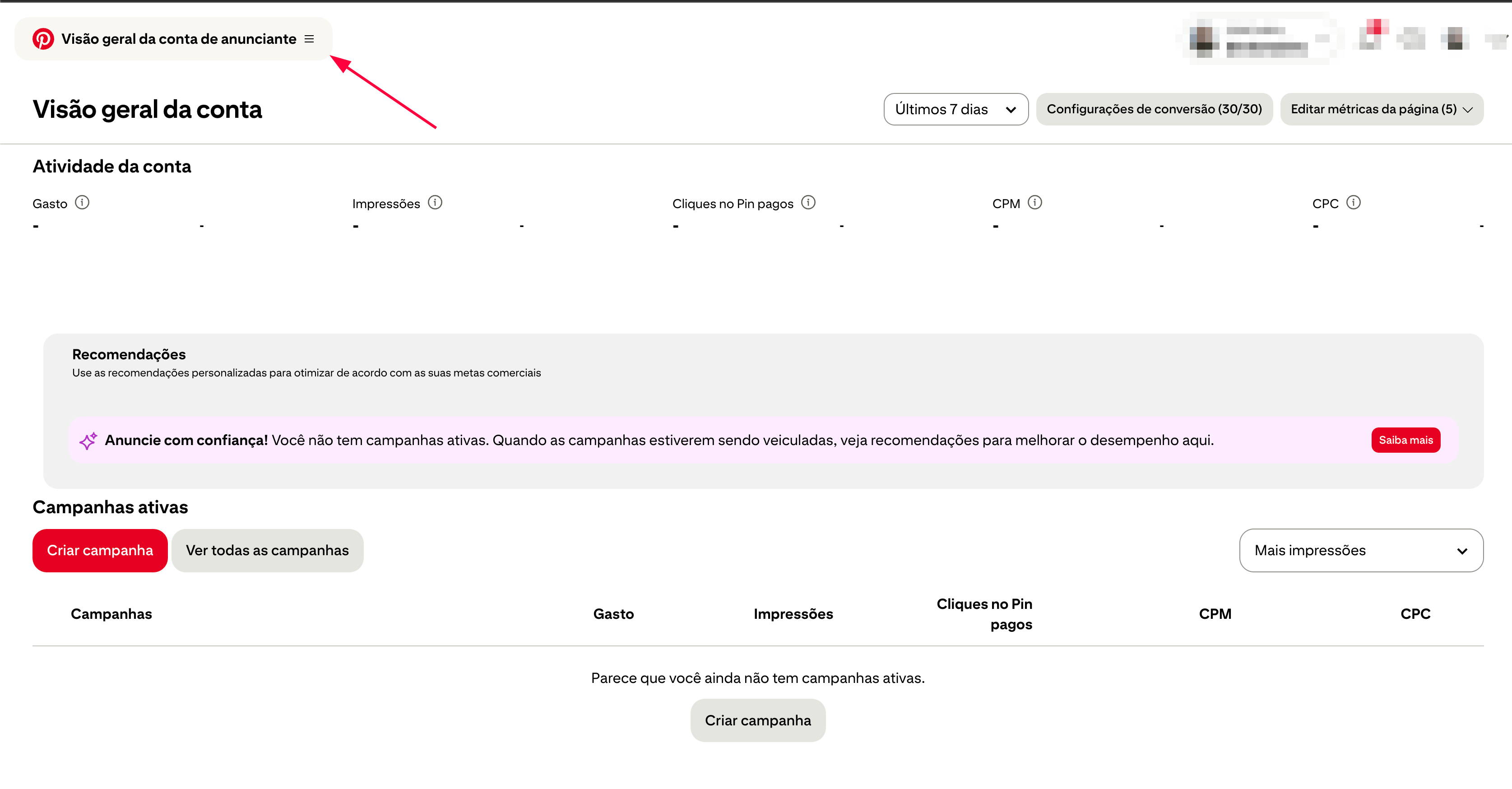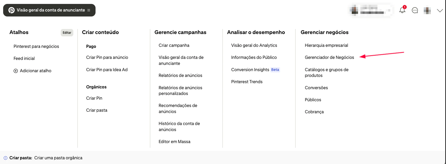 - Entre no gerenciador de anúncios do Pinterest.