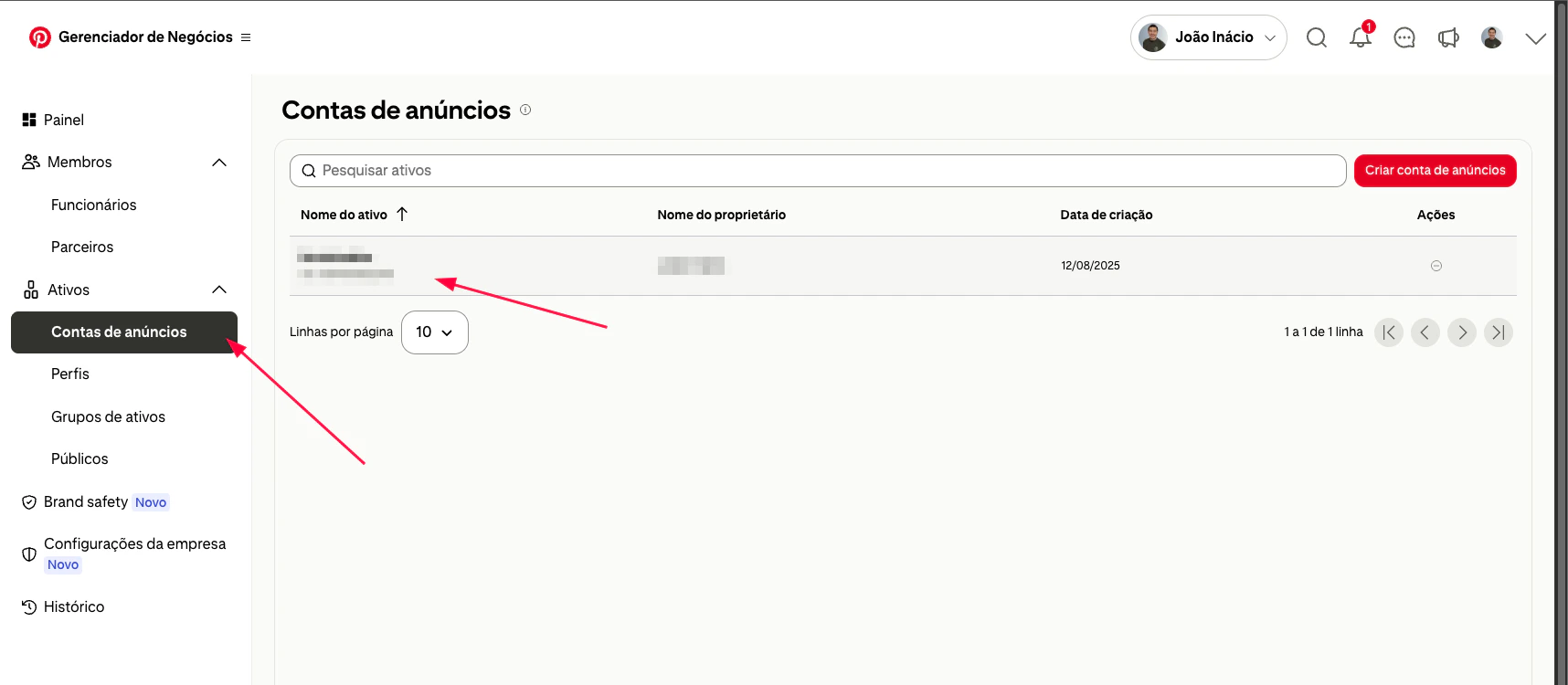 - Clique em Contas de Anúncios e selecione a conta de anunciante.