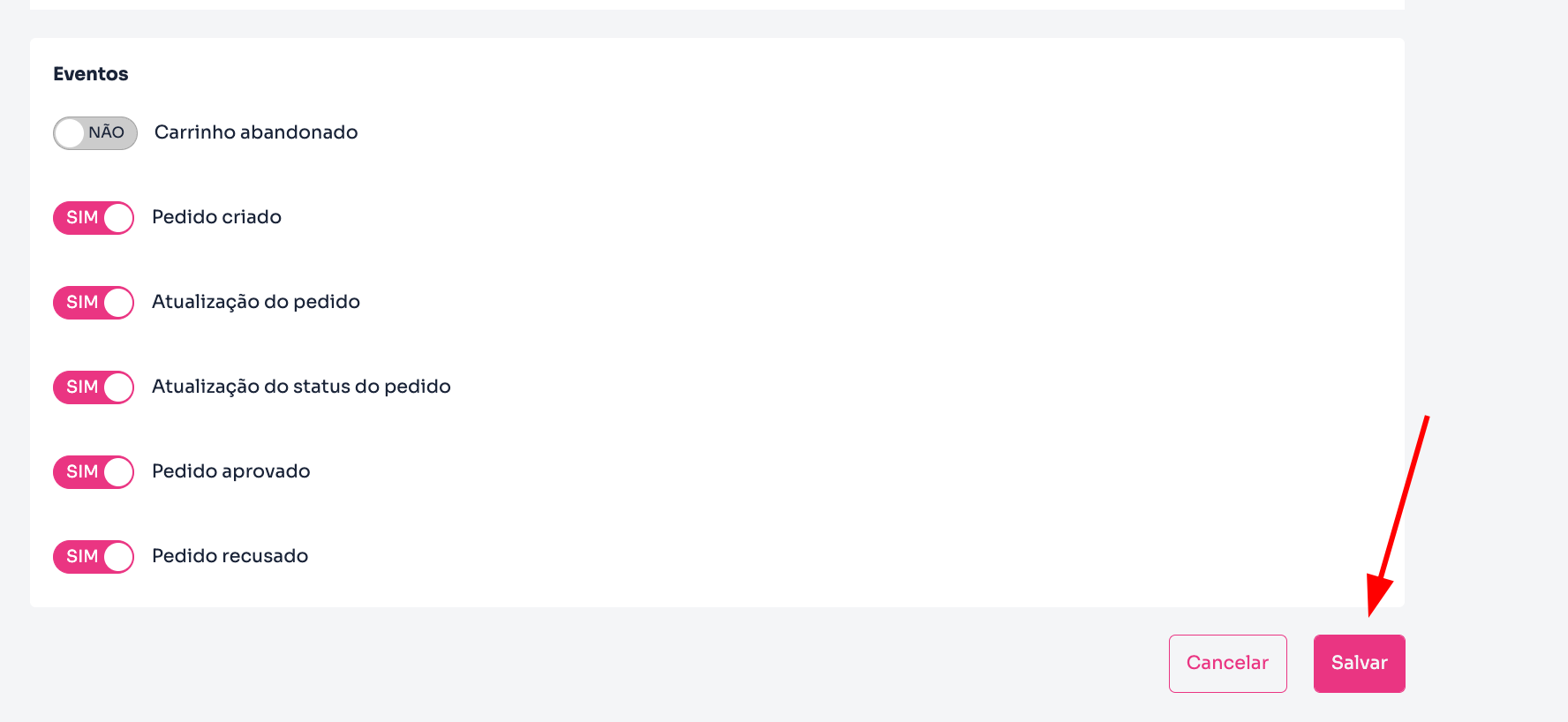 - No painel da Nemu, vá até Configurações > Webhooks.