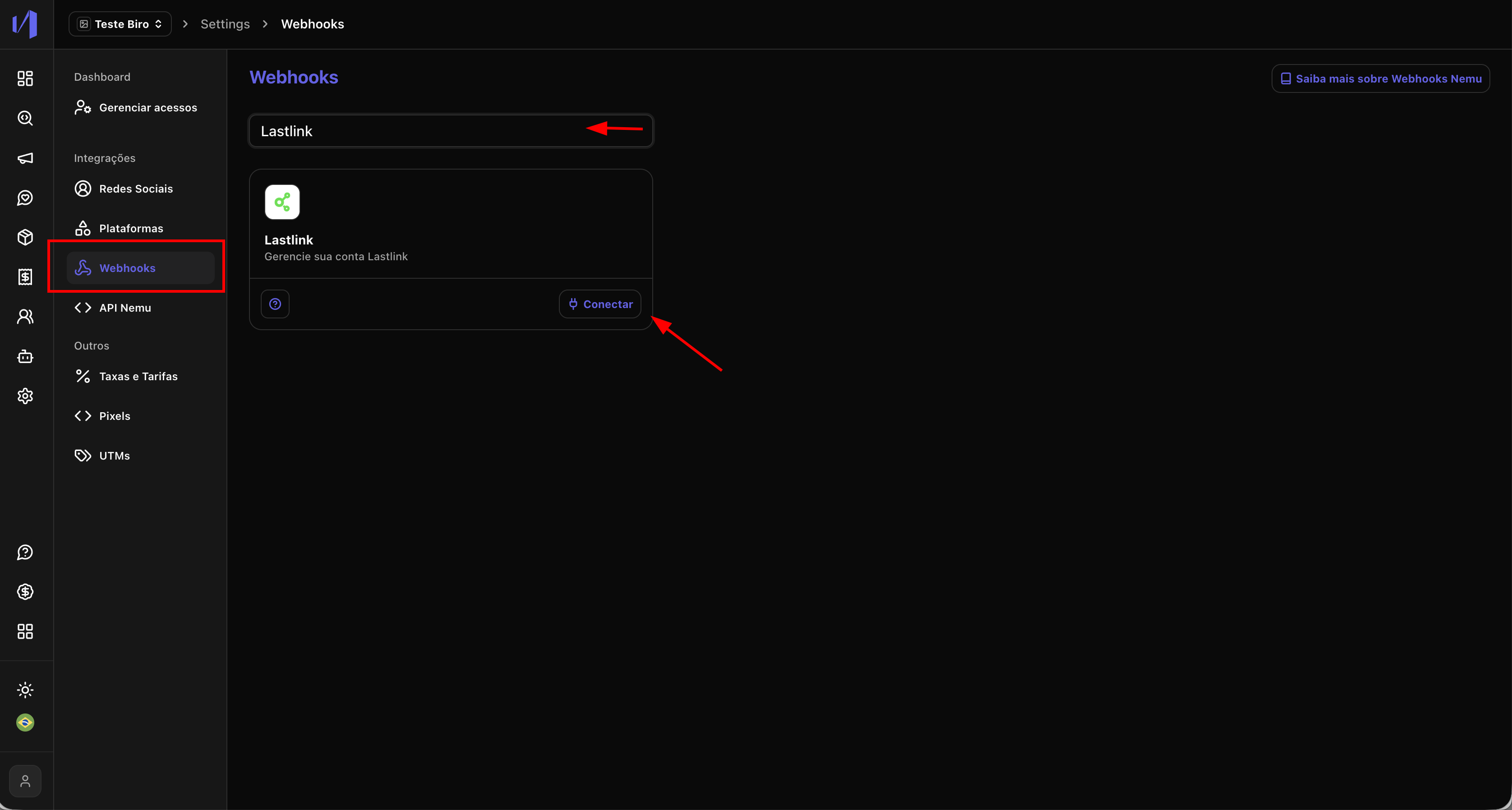 Configurando Webhooks no Dashboard da Nemu