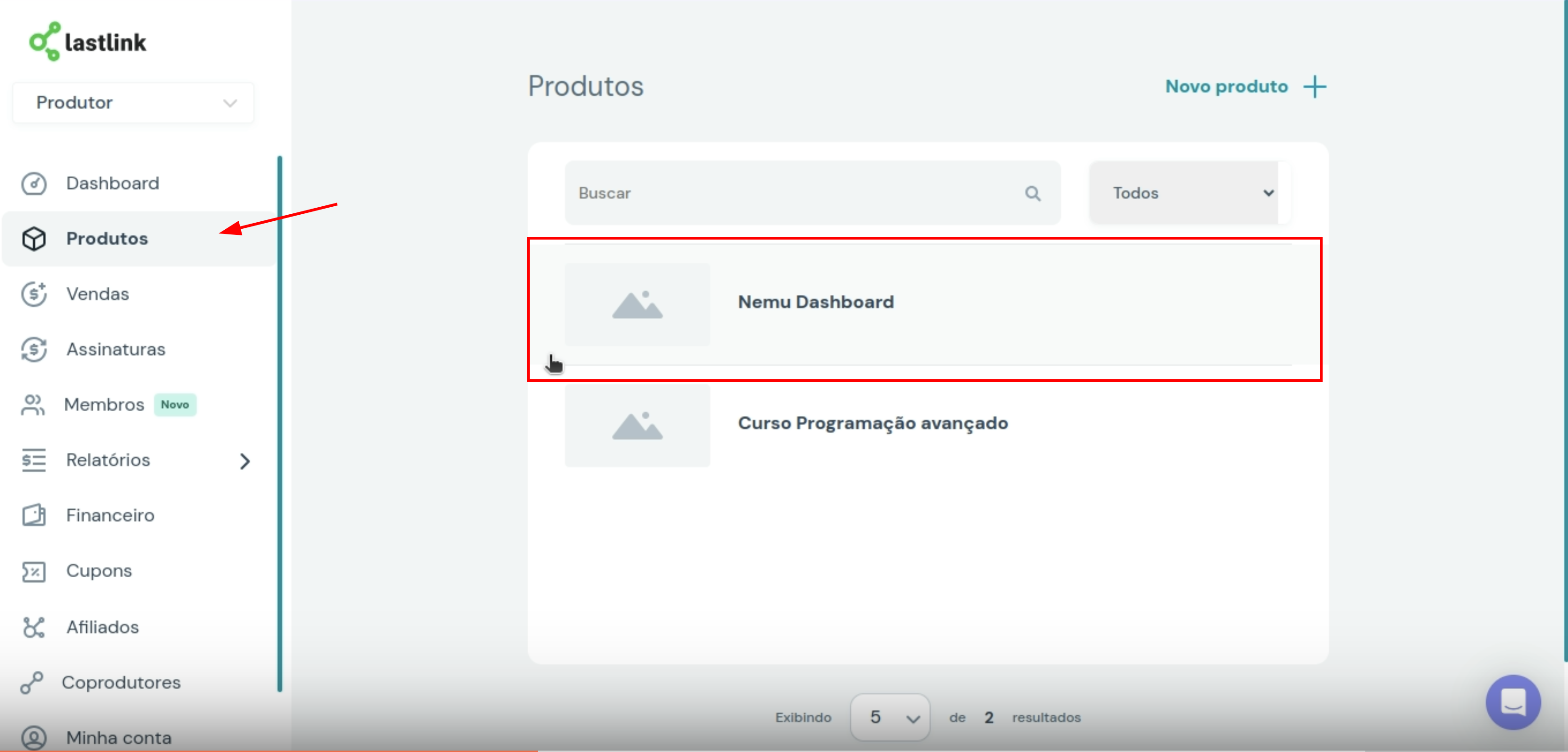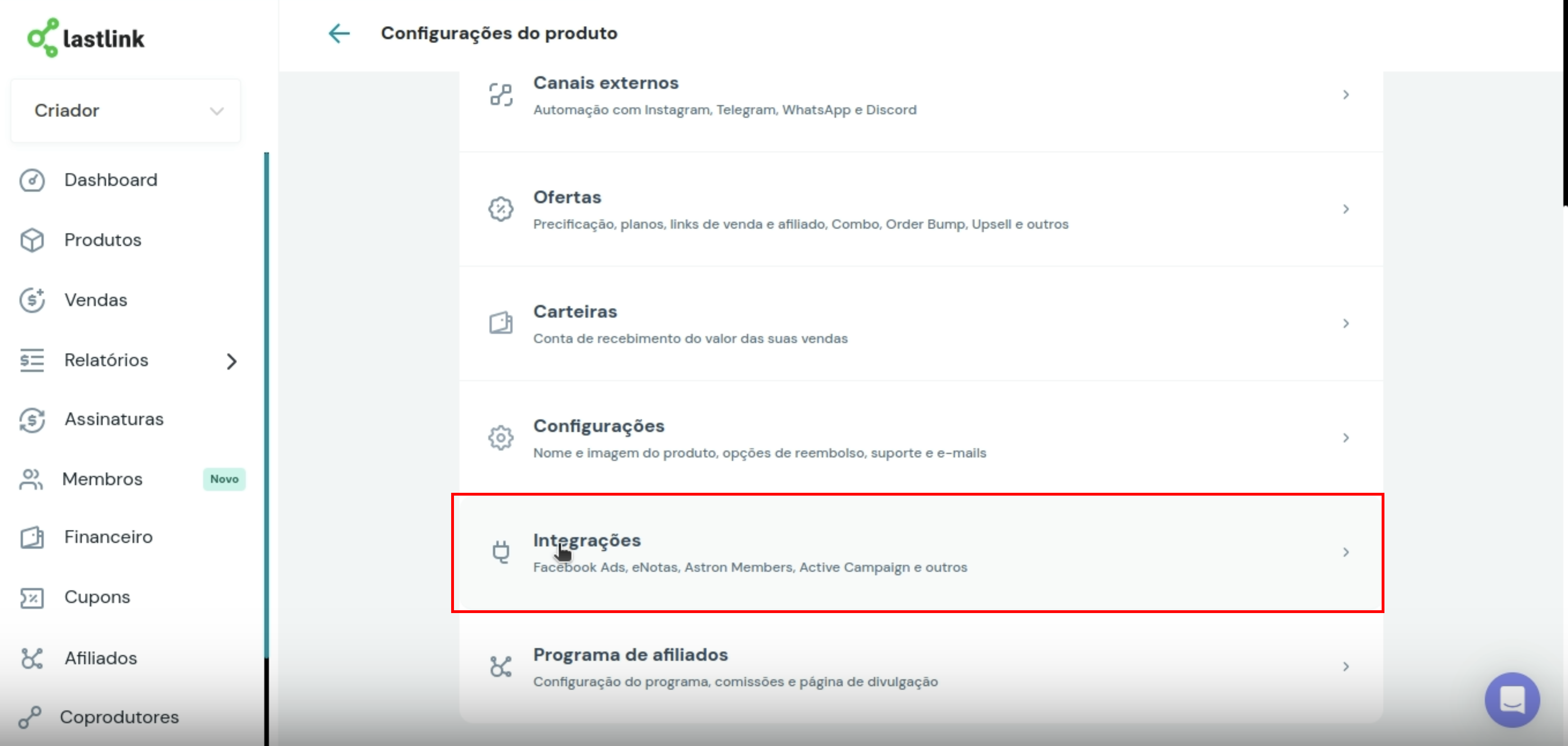 - No painel da LastLink, vá até Produtos e clique no produto que deseja integrar.