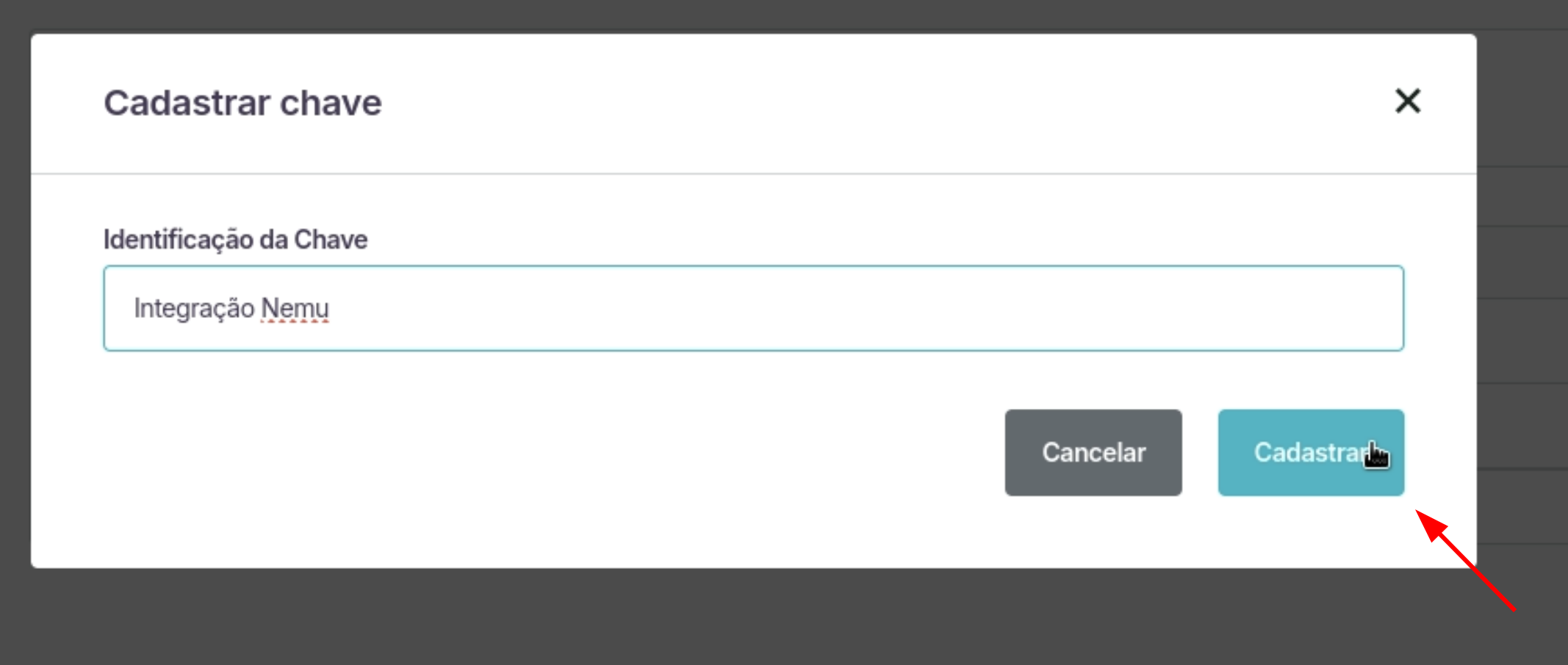 - Defina um nome para a chave e clique em Cadastrar.