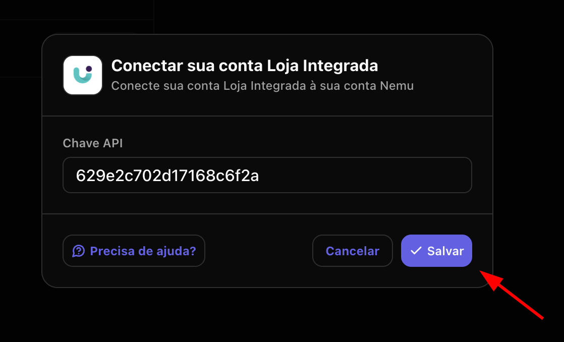 - No painel da Loja Integrada, vá até Configurações > Chave para API.