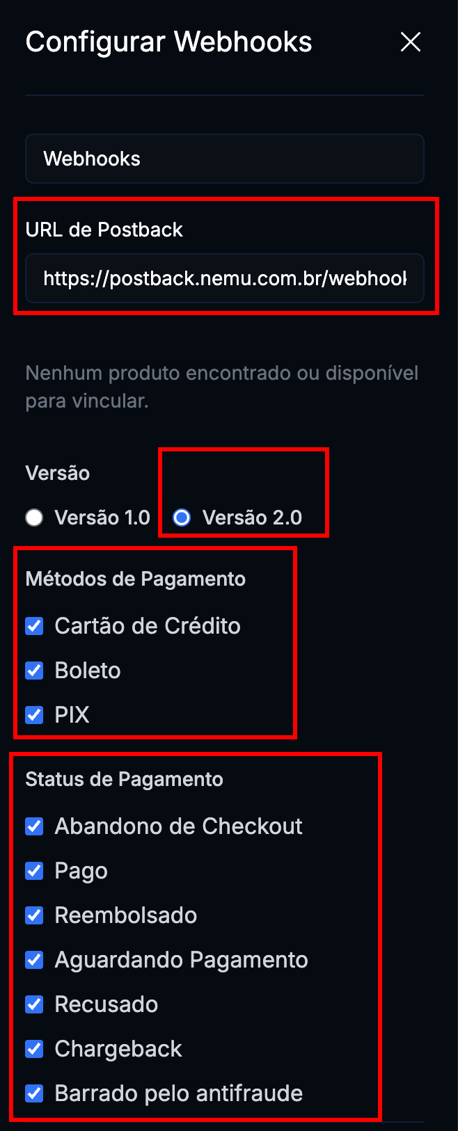 Configurando Webhooks no Dashboard da Nemu