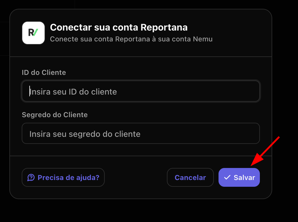 - Defina um nome para a integração (ex: “Integração Nemu”)