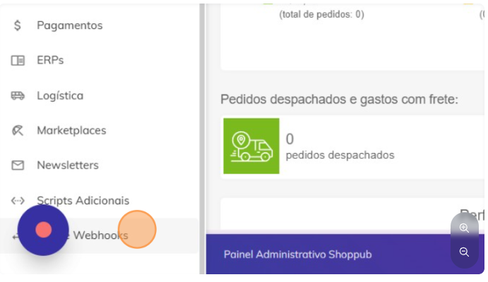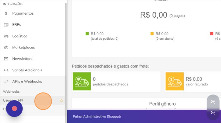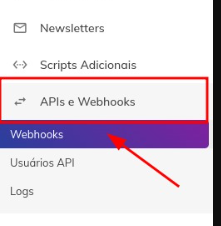 Vá até o menu lateral e, vá em Integrações “APIs e Webhooks”.