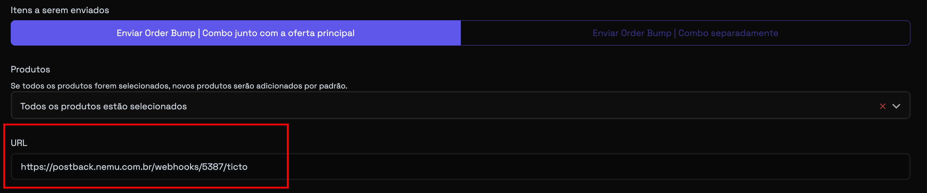 - Volte para a Ticto e selecione os produtos que deseja capturar no webhook