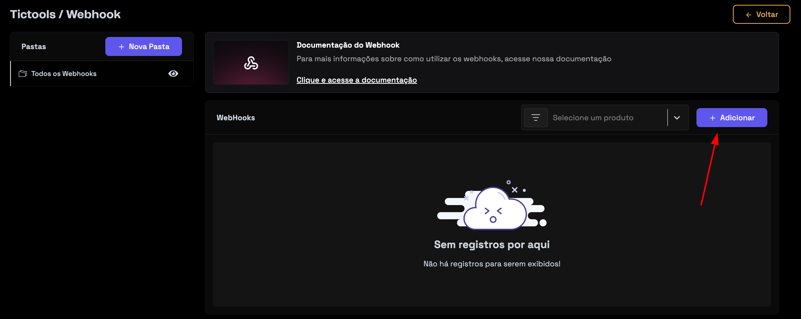 - Clique em Webhooks