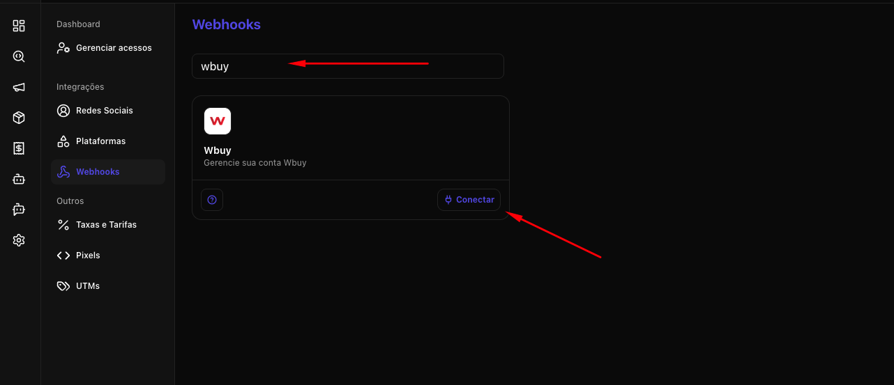 - No painel da Nemu, vá até Configurações > Webhooks.