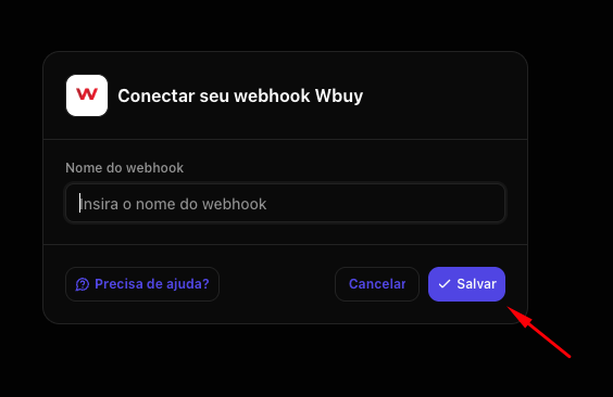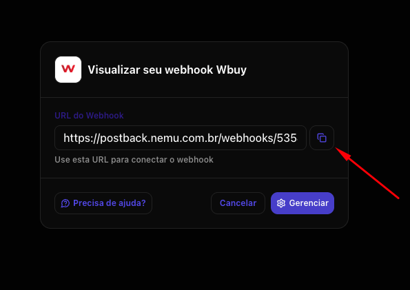 - Clique no botão para copiar a URL do webhook gerada pela Nemu e clique em Finalizar.
