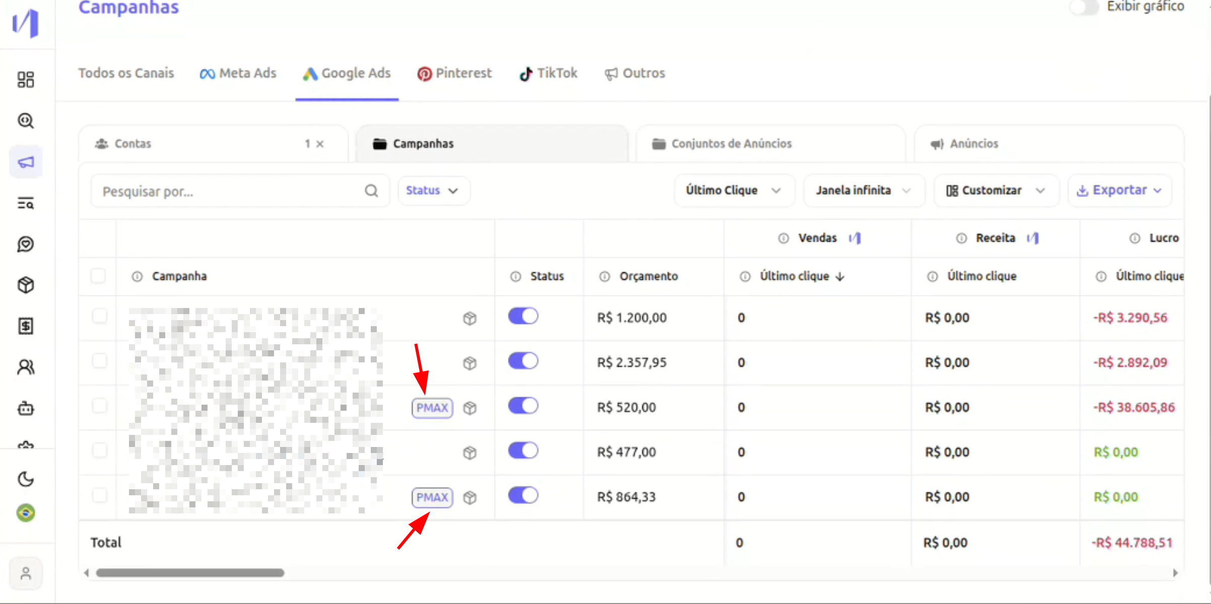 Acesse: Campanhas → Google AdsNa aba “Campanhas”